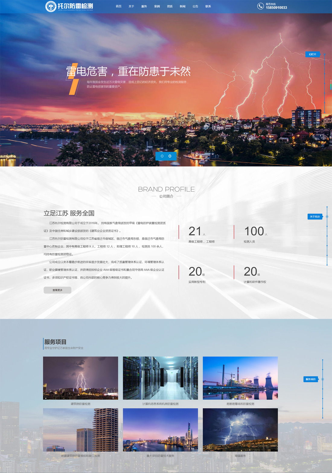 我公司被評為國家高新技術(shù)企業(yè),中國氣象協(xié)會(huì)防雷檢測能力一級企業(yè),全國防雷技術(shù)培訓(xùn)基地,江蘇省高新技術(shù)企業(yè)入庫培育企業(yè),江蘇省防雷減災(zāi)協(xié)會(huì)副會(huì)長單位,江蘇省防雷工程設(shè)計(jì)施工一級企業(yè),目前公司擁有授權(quán)發(fā)明專利 1 項(xiàng),實(shí)用新型專利 20 項(xiàng),計(jì)算機(jī)軟件著作權(quán)20 余項(xiàng)。